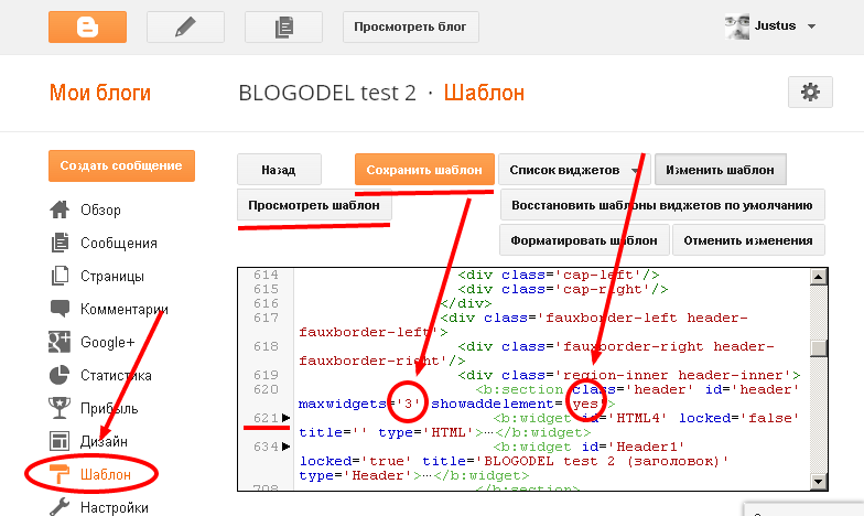 <b:section class='header' id='header' maxwidgets='1' showaddelement='no'> и меняем , как указано на скриншоте на: maxwidgets='3'и maxwidgets='yes' После замены жмем вначале на "Просмотреть шаблон" (подчеркнуто снизу красным) и если все нормально (не появилась табличка об ошибке) нажимаем "Сохранить шаблон". ![]() Таким образом, мы дали "команду" в шаблоне разрешить наличие гадежта в шапке блога. В разделе "Дизайн" у вас должна появиться, выделенная на скриншоте красным маркером секция. ![]() В этой секции вы можете разместить любой код гаджета (в данном случае, я разместил код слайдера). Вот код слайдера: <style type="text/css"> Желтая маркировка это размеры слайдера, красная урлы ваших фотографий. Даю так же, адреса для обработки изображений: http://radikal.cc/ http://pixlr.com/express/ http://blogodel.com/ This posting includes an audio/video/photo media file: Download Now |